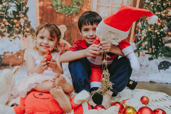 Nas fotografias infantis realizadas na escola, o cenário é pensado para conversar com a criança. Cada material, as cores, objetos, são escolhidos para despertar interesse, curiosidade e movimento.